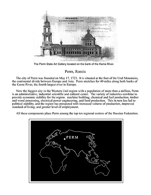 Who Knew about Perm? Really. Not many outside of Russia for sure and then, not many, period. During the cold war, it was like Beijing, a forbidden city. The place where armaments and weapons for the buildup between the east and west occured. When Reagan siad, "Mr Gorbachev...Tear down that wall!" he also said out of the side of his mouth "...oh and could you take that little yellow post it off of your map?"